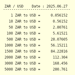 Zar to usd currency chart, exchange rate zar to usd and use the zar currency converter calculator.